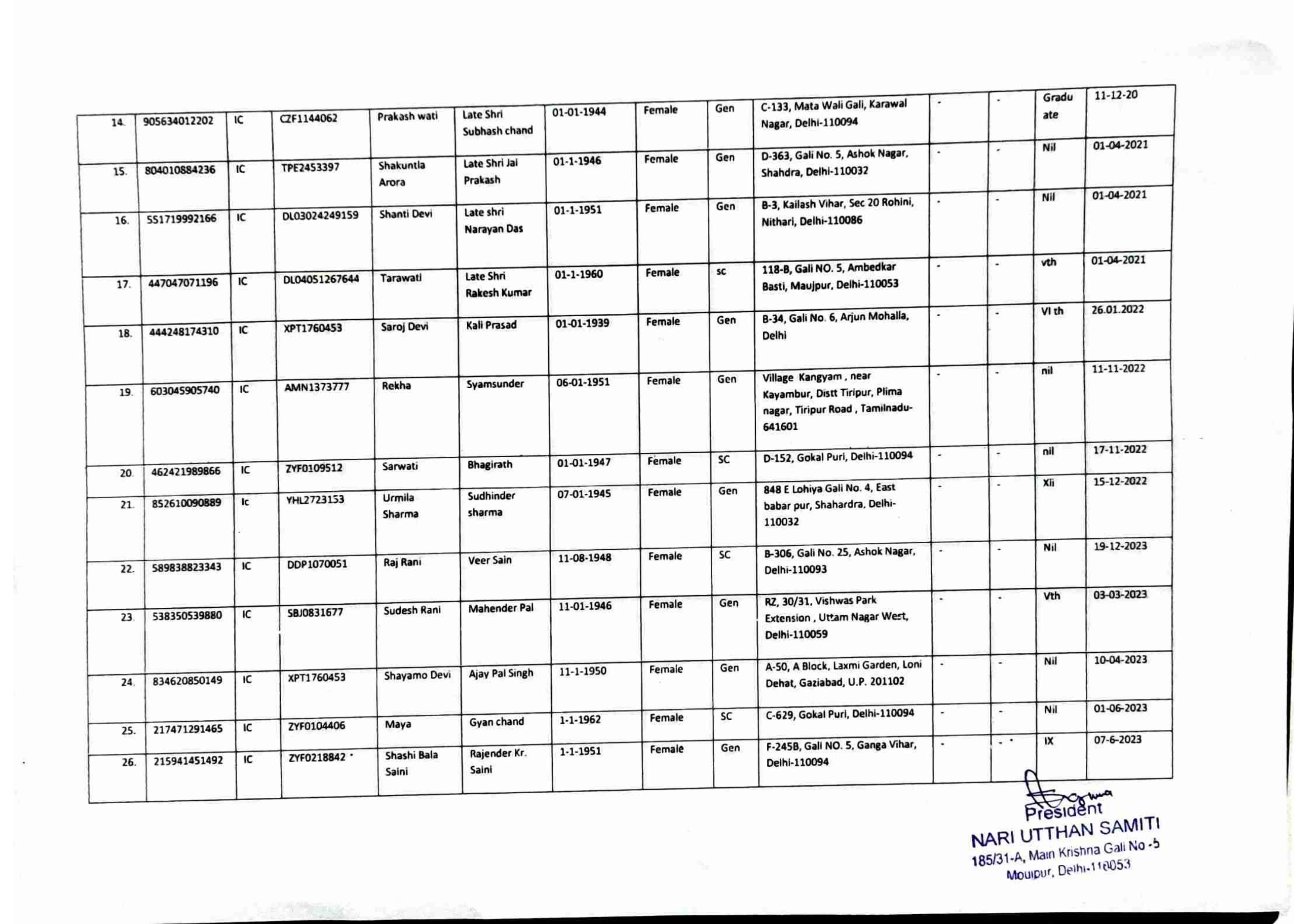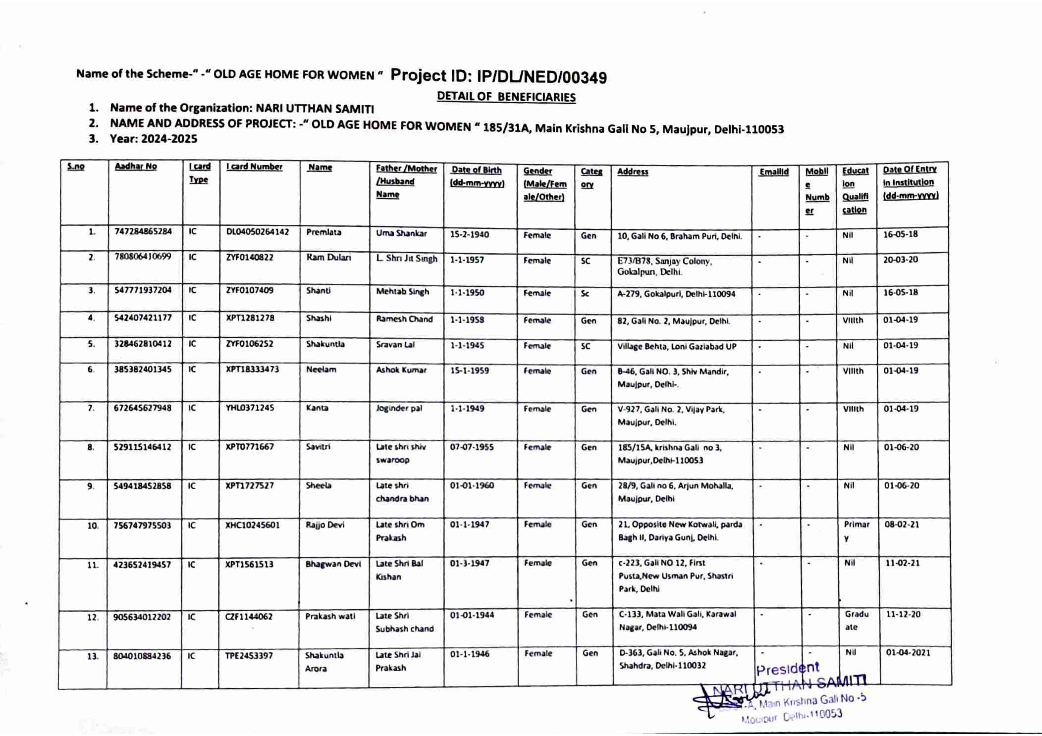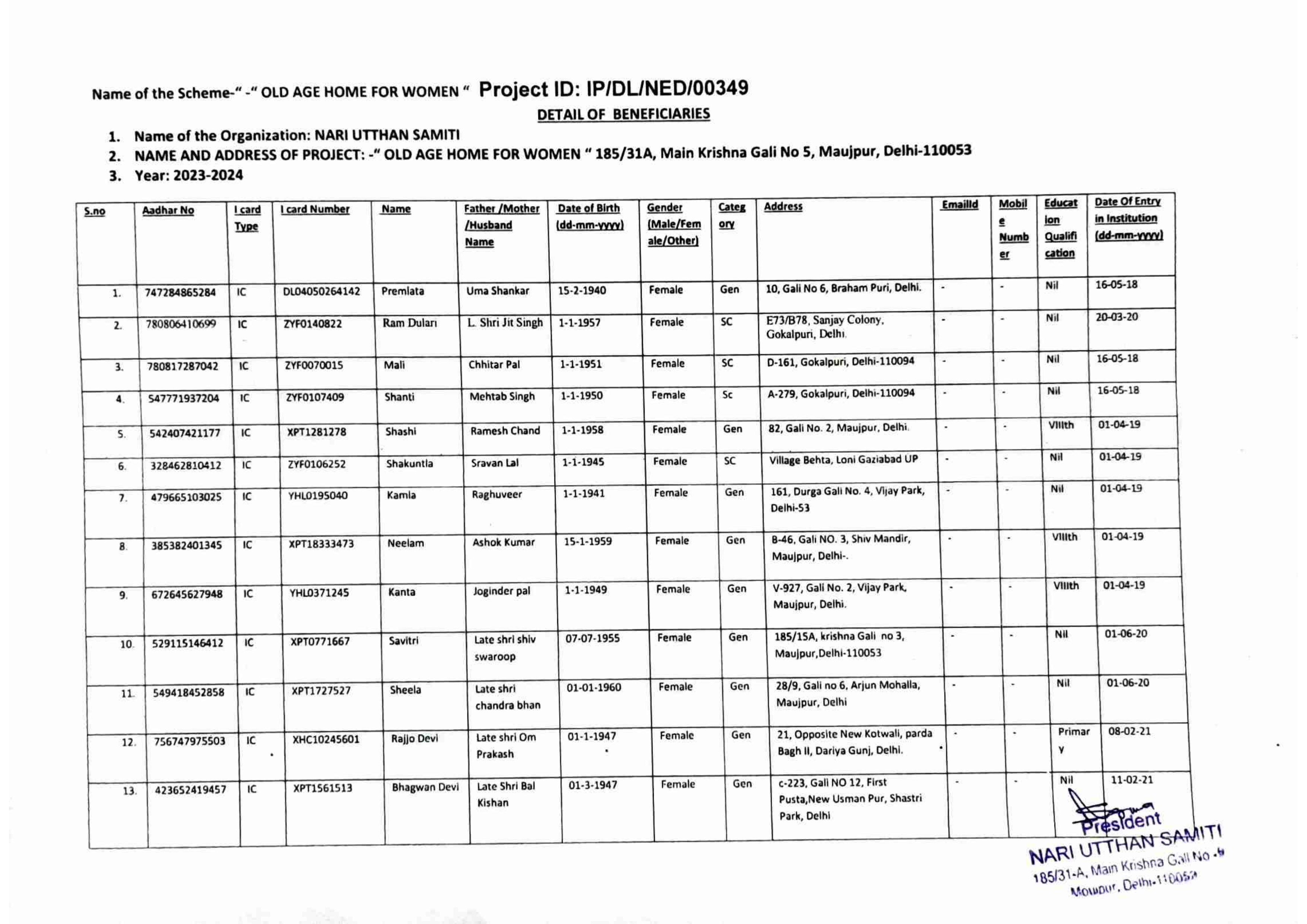 / Beneficiaries List